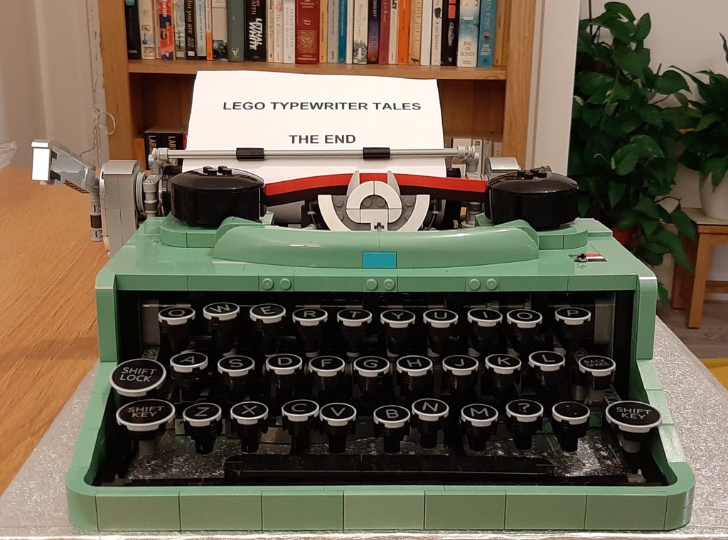 The sweetest words for an author to type are ‘The End’ and I am delighted to let you know that this is the end of my Lego Typewriter Tales as the project is now complete. What do you think? I’m pleased with the finished product but I must say it has been a challenge and I don’t think I’ll be embarking on another any time soon. In its favour, I will say that it is a very mindful pastime as you really need to concentrate. You also need to have nimble fingers to handle some very small parts and you need the patience of a saint when you realise you’ve made a mistake and need to dismantle all your good work. Although it has a ribbon, the keys move and there is a carriage return it does not type. The piece of paper I put in is a fake as I typed it on my computer but it looks good don’t you think? I hope you have enjoyed my Lego journey and would like to thank those of you who took the time to like or make a comment. I really do appreciate it. I’m not sure what my next blog subject will be yet but I am hoping to begin the second book in my Uist Girl Series in the new year, so it might be about my progress with that.