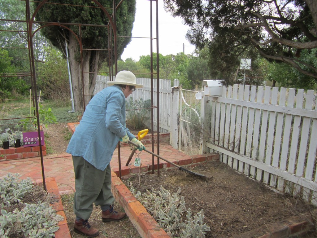 We travelled by car (a little Hyundai Getz that we had hired) from Melbourne arriving early afternoon in the blistering heat. The homestead we would work on turned out to have a fascinating history. The original house was built in 1850 during the Goldrush years but as the goldrush fizzled out, the property was transported around 200 kilometres to its current location in Castlemaine and became a cattle farm. It is now a homestead with fruit trees, chickens, and a vegetable garden.