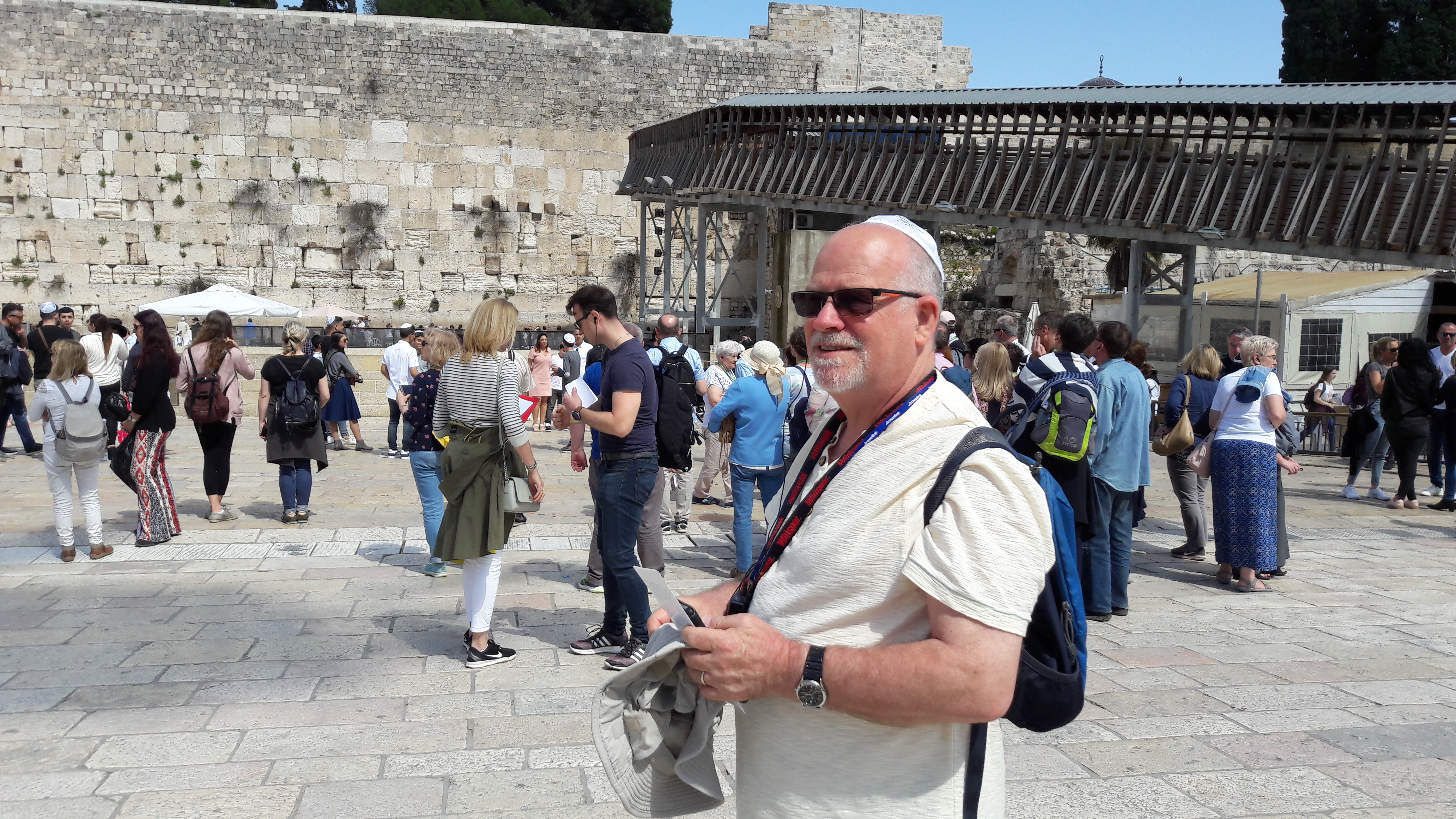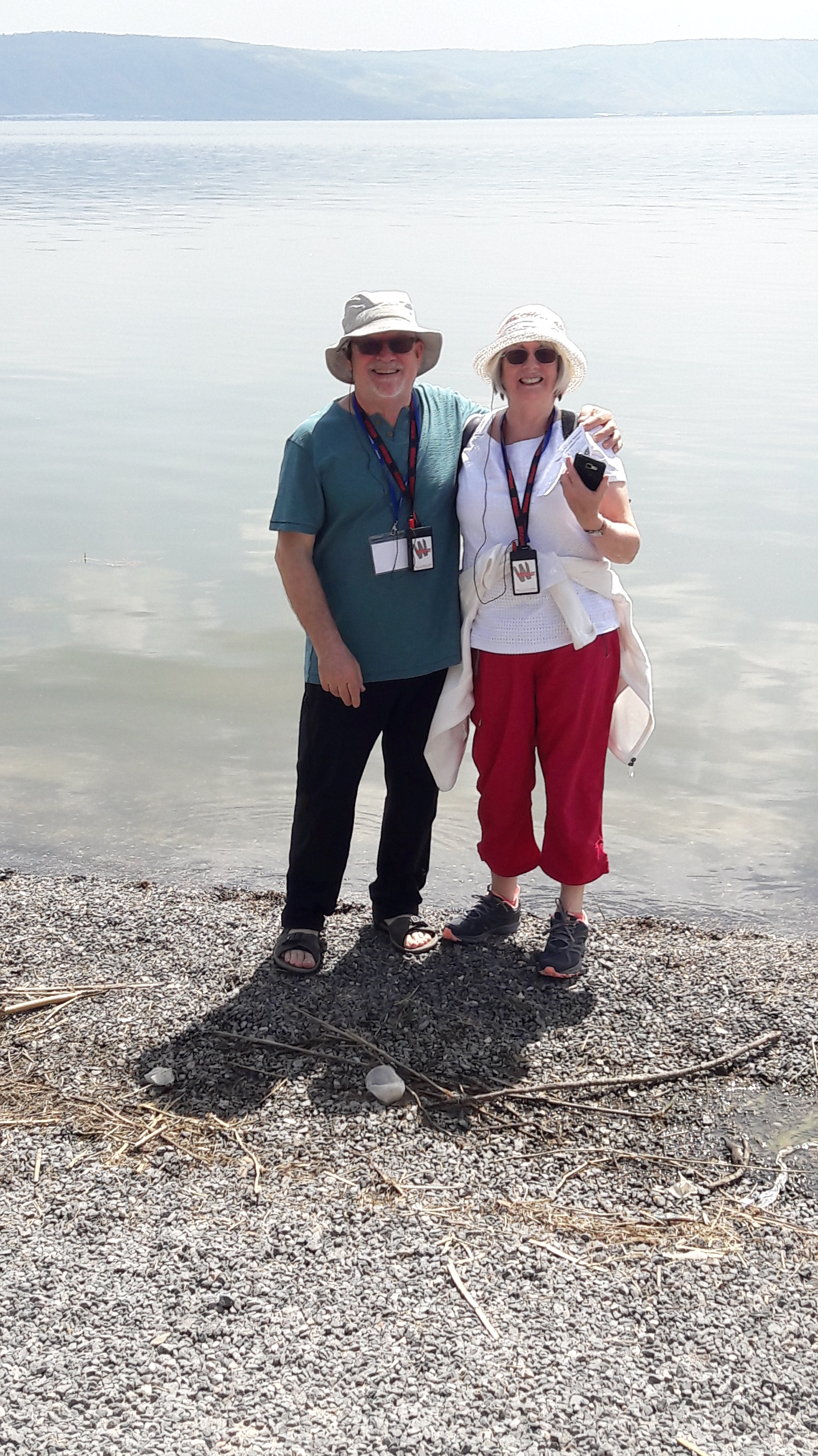 For me the highlights were Tabgha and Jerusalem. Tabgha was on the shores of the Sea of Galilee and the place where many of Jesus’ miracles took place and also the place where he appeared to his disciples after his resurrection. Jerusalem was amazing and I would like to go back there. We visited the western or wailing wall as we know it, walked the Via Delarosa where Jesus carried his cross to his crucifixion and stood on the steps of the temple where he overturned the tables of the moneylenders. The trip took us all over Israel. We saw where the Dead Sea Scrolls were discovered and viewed them in glass cases in the beautiful museum that’s been erected for them and visited archaeological digs one of which was a Roman Theatre built by the infamous Pontius Pilot. Water featured quite a bit on our trip; sailing on the Sea of Galilee while taking part in a service was special, standing in the River Jordan as one of our party was being baptised was an emotional experience and what can I say about swimming in the Dead Sea? It was scary and exhilarating as we floated in the salty, brown water and struggled to right ourselves when we wanted to get out. We were taken to where it was said Jesus was born, where he and his disciples ate their last supper, where he was crucified and where he was entombed. I loved the walk we did from the Mount of Olives to the Garden of Gethsemane where we had a service next to the peace garden.