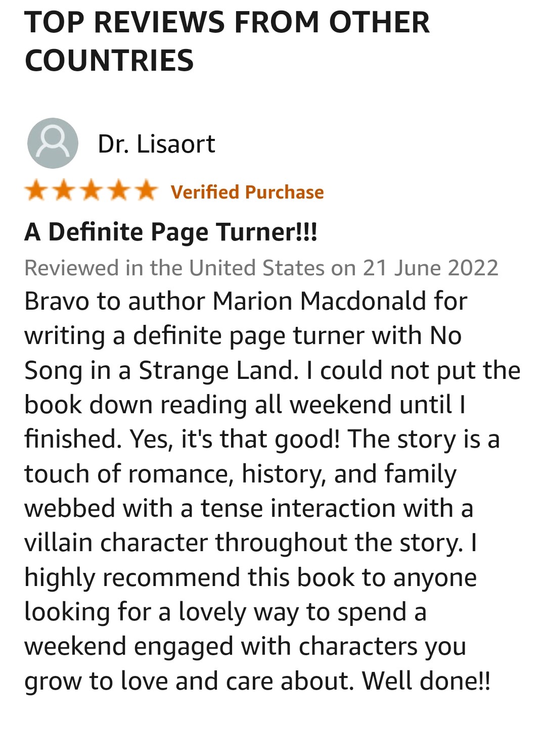 I got a fantastic review for No Song in a Strange Land from a reader in the US, so was delighted about that. You can see it above.