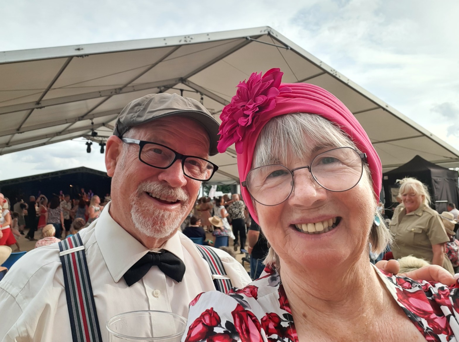 We travelled first of all to the Twinwood Vintage Dance Festival in Bedford. There must have been over 1000 motorhomes, caravans and tents there. What a week-end it was. There were so many bands to choose from playing music from the thirties right up to the seventies. We took some dance classes but am afraid to say by the end we were no great shakes at the Charleston or Swing but we had a great time nevertheless. It was such fun dressing up and seeing all the old clothes and paraphernalia. Vintage is certainly big business going by the number of stalls selling things there.